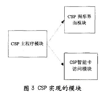 將CSP的實(shí)現(xiàn)分為3個(gè)模塊:CSP主程序模塊、CSP圖形界面模塊、CSP智能卡訪問(wèn)模塊